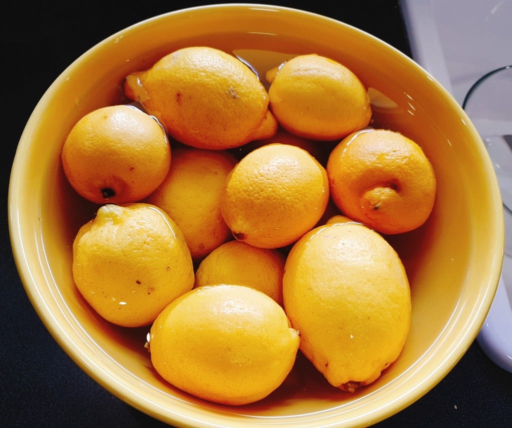 Przygotowanie cytryn do kiszenia zaczniemy od ich umycia. Każdy cytrus w Polsce przebywa długa drogę zanim go kupimy, więc jest odpowiednio zabezpieczony. Pierwszym etapem jest umycie ich w gorącej wodzie zmywakiem z delikatną ilością detergentu. Usuniemy w ten sposób woskowanie. Kolejnym jest usunięcie substancji nierozpuszczalnych w wodzie.