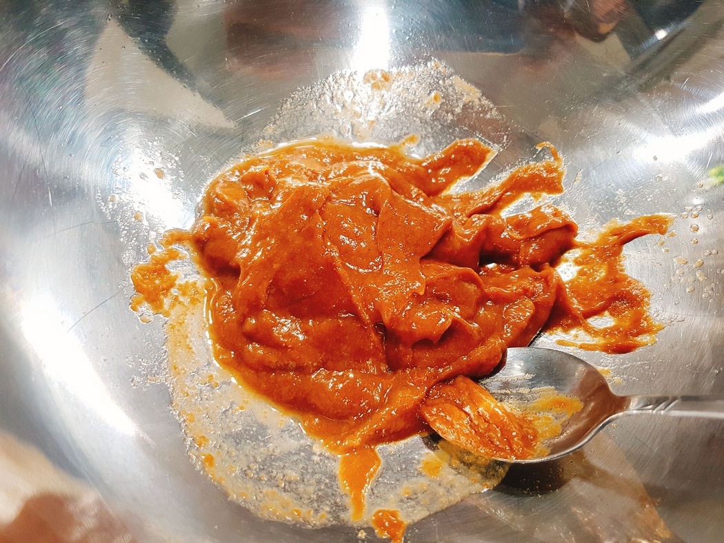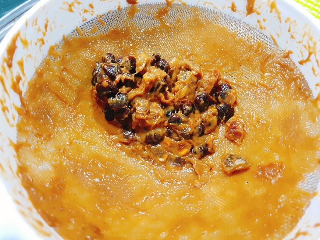 Po tym czasie odlewamy wodę, a pozostałą część przecieramy przez sito tak, aby uzyskać pastę. Możecie też użyć gotowej pasy, jest dostępna w wielu sklepach