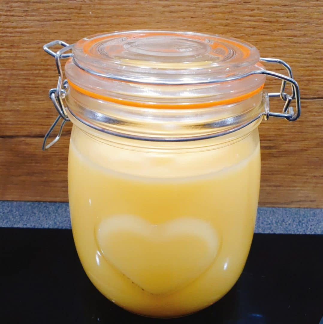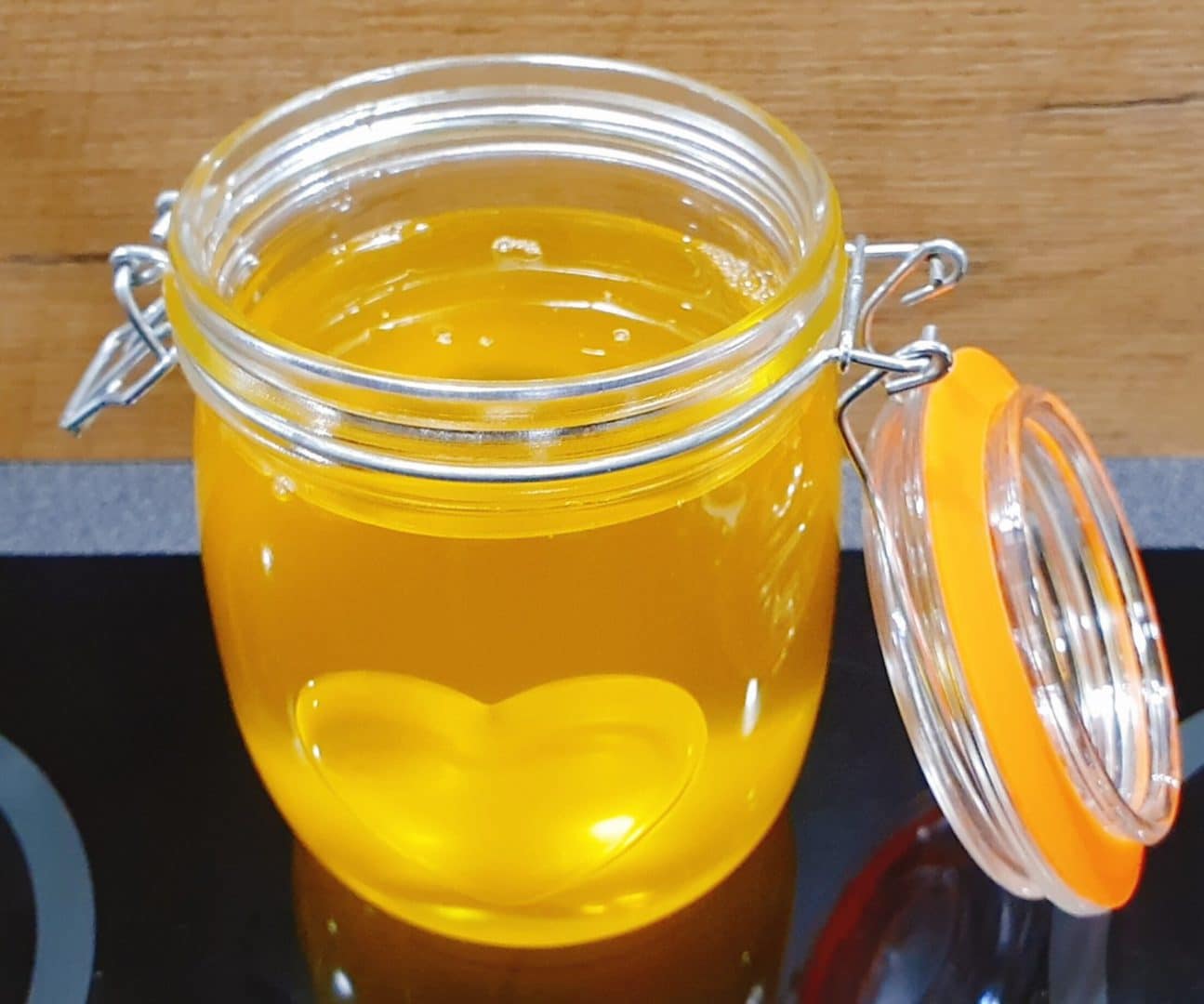 Do sklarowania masła wykorzystujemy dobre jakościowo masło, z minimalną zawartością tłuszczu 83%. Z kilograma masła (5 kostek) wyjdzie ok. 0,8l klarowanego masła.